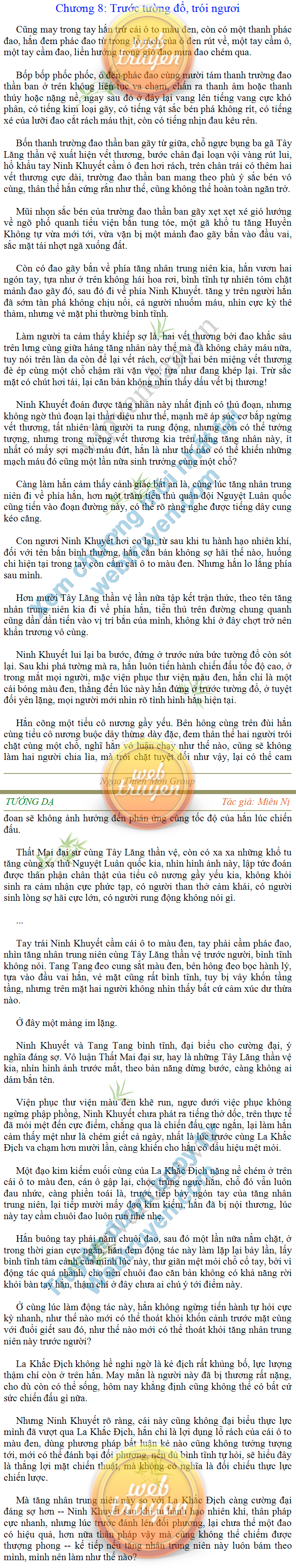 Tướng DạTruyện Converter, Truyện Huyền Huyễn, Truyện Kiếm Hiệp, Truyện Tiên HiệpTrên hoang nguyên trống trải bỗng xuất hiện ba người, cả ba đều không hẹn mà dừng chân dưới một thân cây còi cọc hiếm hoi, bọn họ không ai lên tiếng, chỉ im lặng cúi đầu nhìn xuống, tựa như dưới gốc cây có thứ gì đó rất thú vị, rất đáng để nghiên cứu và nghiền ngẫm. Hai đàn kiến vây kín quanh rễ cây màu nâu lộ ra trên mặt đất lạnh cóng tiến hành chiến tranh giành lãnh thổ, có lẽ vì trên mảnh hoang nguyên cằn cỗi vắng vẻ này chiếc rễ cây là một nơi trú ẩn tuyệt vời có một không hai nên trận chiến diễn ra hết sức khốc liệt, chỉ sau một lúc vài nghìn con kiến đã biến thành thi thể. Máu tanh là thế, nhưng thực tế trong mắt con người, vài nghìn xác kiến cũng chỉ là một mảng đen đen nhỏ xíu.Khí trời vẫn rất lạnh lẽo nhưng ba người đứng đó y phục lại khá mỏng manh, hình như họ không biết sợ lạnh là gì, cứ đứng bất động chăm chú quan sát. Không biết qua bao nhiêu lâu, bỗng một giọng khe khẽ cất lên:- Nước kiến nơi thế tục, đại đạo ra sao?Người vừa lên tiếng là một thiếu niên mặt mũi sáng sủa… *Chương này có nội dung ảnh, nếu bạn không thấy nội dung chương, vui lòng bật chế độ hiện hình ảnh của trình duyệt để đọc.