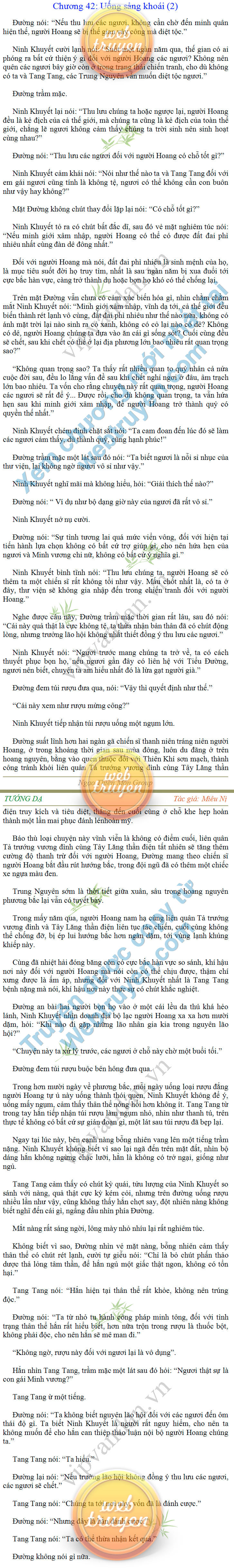 Tướng DạTruyện Converter, Truyện Huyền Huyễn, Truyện Kiếm Hiệp, Truyện Tiên HiệpTrên hoang nguyên trống trải bỗng xuất hiện ba người, cả ba đều không hẹn mà dừng chân dưới một thân cây còi cọc hiếm hoi, bọn họ không ai lên tiếng, chỉ im lặng cúi đầu nhìn xuống, tựa như dưới gốc cây có thứ gì đó rất thú vị, rất đáng để nghiên cứu và nghiền ngẫm. Hai đàn kiến vây kín quanh rễ cây màu nâu lộ ra trên mặt đất lạnh cóng tiến hành chiến tranh giành lãnh thổ, có lẽ vì trên mảnh hoang nguyên cằn cỗi vắng vẻ này chiếc rễ cây là một nơi trú ẩn tuyệt vời có một không hai nên trận chiến diễn ra hết sức khốc liệt, chỉ sau một lúc vài nghìn con kiến đã biến thành thi thể. Máu tanh là thế, nhưng thực tế trong mắt con người, vài nghìn xác kiến cũng chỉ là một mảng đen đen nhỏ xíu.Khí trời vẫn rất lạnh lẽo nhưng ba người đứng đó y phục lại khá mỏng manh, hình như họ không biết sợ lạnh là gì, cứ đứng bất động chăm chú quan sát. Không biết qua bao nhiêu lâu, bỗng một giọng khe khẽ cất lên:- Nước kiến nơi thế tục, đại đạo ra sao?Người vừa lên tiếng là một thiếu niên mặt mũi sáng sủa… *Chương này có nội dung ảnh, nếu bạn không thấy nội dung chương, vui lòng bật chế độ hiện hình ảnh của trình duyệt để đọc.