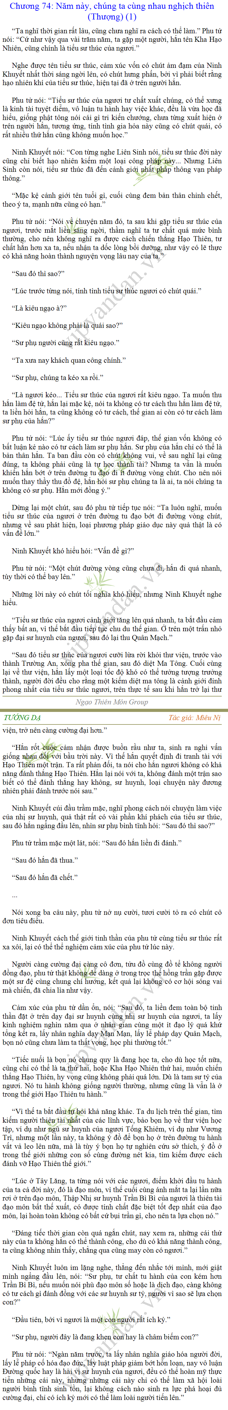 Tướng DạTruyện Converter, Truyện Huyền Huyễn, Truyện Kiếm Hiệp, Truyện Tiên HiệpTrên hoang nguyên trống trải bỗng xuất hiện ba người, cả ba đều không hẹn mà dừng chân dưới một thân cây còi cọc hiếm hoi, bọn họ không ai lên tiếng, chỉ im lặng cúi đầu nhìn xuống, tựa như dưới gốc cây có thứ gì đó rất thú vị, rất đáng để nghiên cứu và nghiền ngẫm. Hai đàn kiến vây kín quanh rễ cây màu nâu lộ ra trên mặt đất lạnh cóng tiến hành chiến tranh giành lãnh thổ, có lẽ vì trên mảnh hoang nguyên cằn cỗi vắng vẻ này chiếc rễ cây là một nơi trú ẩn tuyệt vời có một không hai nên trận chiến diễn ra hết sức khốc liệt, chỉ sau một lúc vài nghìn con kiến đã biến thành thi thể. Máu tanh là thế, nhưng thực tế trong mắt con người, vài nghìn xác kiến cũng chỉ là một mảng đen đen nhỏ xíu.Khí trời vẫn rất lạnh lẽo nhưng ba người đứng đó y phục lại khá mỏng manh, hình như họ không biết sợ lạnh là gì, cứ đứng bất động chăm chú quan sát. Không biết qua bao nhiêu lâu, bỗng một giọng khe khẽ cất lên:- Nước kiến nơi thế tục, đại đạo ra sao?Người vừa lên tiếng là một thiếu niên mặt mũi sáng sủa… *Chương này có nội dung ảnh, nếu bạn không thấy nội dung chương, vui lòng bật chế độ hiện hình ảnh của trình duyệt để đọc.