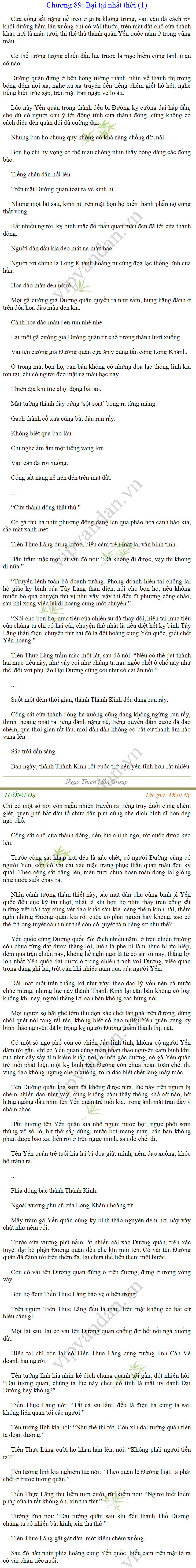 Tướng DạTruyện Converter, Truyện Huyền Huyễn, Truyện Kiếm Hiệp, Truyện Tiên HiệpTrên hoang nguyên trống trải bỗng xuất hiện ba người, cả ba đều không hẹn mà dừng chân dưới một thân cây còi cọc hiếm hoi, bọn họ không ai lên tiếng, chỉ im lặng cúi đầu nhìn xuống, tựa như dưới gốc cây có thứ gì đó rất thú vị, rất đáng để nghiên cứu và nghiền ngẫm. Hai đàn kiến vây kín quanh rễ cây màu nâu lộ ra trên mặt đất lạnh cóng tiến hành chiến tranh giành lãnh thổ, có lẽ vì trên mảnh hoang nguyên cằn cỗi vắng vẻ này chiếc rễ cây là một nơi trú ẩn tuyệt vời có một không hai nên trận chiến diễn ra hết sức khốc liệt, chỉ sau một lúc vài nghìn con kiến đã biến thành thi thể. Máu tanh là thế, nhưng thực tế trong mắt con người, vài nghìn xác kiến cũng chỉ là một mảng đen đen nhỏ xíu.Khí trời vẫn rất lạnh lẽo nhưng ba người đứng đó y phục lại khá mỏng manh, hình như họ không biết sợ lạnh là gì, cứ đứng bất động chăm chú quan sát. Không biết qua bao nhiêu lâu, bỗng một giọng khe khẽ cất lên:- Nước kiến nơi thế tục, đại đạo ra sao?Người vừa lên tiếng là một thiếu niên mặt mũi sáng sủa… *Chương này có nội dung ảnh, nếu bạn không thấy nội dung chương, vui lòng bật chế độ hiện hình ảnh của trình duyệt để đọc.