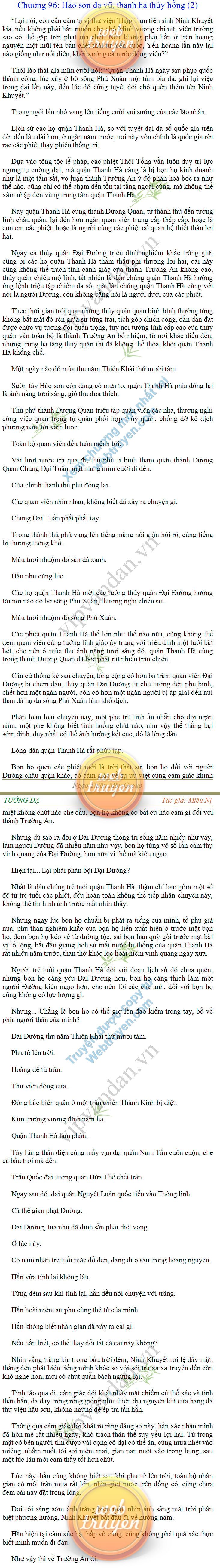 Tướng DạTruyện Converter, Truyện Huyền Huyễn, Truyện Kiếm Hiệp, Truyện Tiên HiệpTrên hoang nguyên trống trải bỗng xuất hiện ba người, cả ba đều không hẹn mà dừng chân dưới một thân cây còi cọc hiếm hoi, bọn họ không ai lên tiếng, chỉ im lặng cúi đầu nhìn xuống, tựa như dưới gốc cây có thứ gì đó rất thú vị, rất đáng để nghiên cứu và nghiền ngẫm. Hai đàn kiến vây kín quanh rễ cây màu nâu lộ ra trên mặt đất lạnh cóng tiến hành chiến tranh giành lãnh thổ, có lẽ vì trên mảnh hoang nguyên cằn cỗi vắng vẻ này chiếc rễ cây là một nơi trú ẩn tuyệt vời có một không hai nên trận chiến diễn ra hết sức khốc liệt, chỉ sau một lúc vài nghìn con kiến đã biến thành thi thể. Máu tanh là thế, nhưng thực tế trong mắt con người, vài nghìn xác kiến cũng chỉ là một mảng đen đen nhỏ xíu.Khí trời vẫn rất lạnh lẽo nhưng ba người đứng đó y phục lại khá mỏng manh, hình như họ không biết sợ lạnh là gì, cứ đứng bất động chăm chú quan sát. Không biết qua bao nhiêu lâu, bỗng một giọng khe khẽ cất lên:- Nước kiến nơi thế tục, đại đạo ra sao?Người vừa lên tiếng là một thiếu niên mặt mũi sáng sủa… *Chương này có nội dung ảnh, nếu bạn không thấy nội dung chương, vui lòng bật chế độ hiện hình ảnh của trình duyệt để đọc.