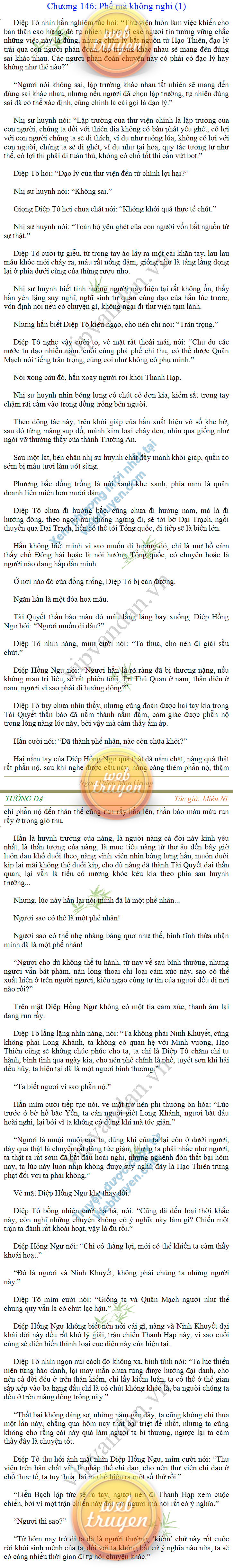 Tướng DạTruyện Converter, Truyện Huyền Huyễn, Truyện Kiếm Hiệp, Truyện Tiên HiệpTrên hoang nguyên trống trải bỗng xuất hiện ba người, cả ba đều không hẹn mà dừng chân dưới một thân cây còi cọc hiếm hoi, bọn họ không ai lên tiếng, chỉ im lặng cúi đầu nhìn xuống, tựa như dưới gốc cây có thứ gì đó rất thú vị, rất đáng để nghiên cứu và nghiền ngẫm. Hai đàn kiến vây kín quanh rễ cây màu nâu lộ ra trên mặt đất lạnh cóng tiến hành chiến tranh giành lãnh thổ, có lẽ vì trên mảnh hoang nguyên cằn cỗi vắng vẻ này chiếc rễ cây là một nơi trú ẩn tuyệt vời có một không hai nên trận chiến diễn ra hết sức khốc liệt, chỉ sau một lúc vài nghìn con kiến đã biến thành thi thể. Máu tanh là thế, nhưng thực tế trong mắt con người, vài nghìn xác kiến cũng chỉ là một mảng đen đen nhỏ xíu.Khí trời vẫn rất lạnh lẽo nhưng ba người đứng đó y phục lại khá mỏng manh, hình như họ không biết sợ lạnh là gì, cứ đứng bất động chăm chú quan sát. Không biết qua bao nhiêu lâu, bỗng một giọng khe khẽ cất lên:- Nước kiến nơi thế tục, đại đạo ra sao?Người vừa lên tiếng là một thiếu niên mặt mũi sáng sủa… *Chương này có nội dung ảnh, nếu bạn không thấy nội dung chương, vui lòng bật chế độ hiện hình ảnh của trình duyệt để đọc.