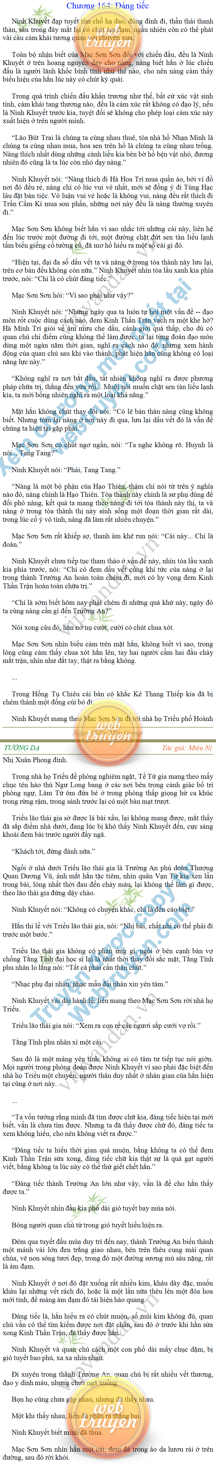 Tướng DạTruyện Converter, Truyện Huyền Huyễn, Truyện Kiếm Hiệp, Truyện Tiên HiệpTrên hoang nguyên trống trải bỗng xuất hiện ba người, cả ba đều không hẹn mà dừng chân dưới một thân cây còi cọc hiếm hoi, bọn họ không ai lên tiếng, chỉ im lặng cúi đầu nhìn xuống, tựa như dưới gốc cây có thứ gì đó rất thú vị, rất đáng để nghiên cứu và nghiền ngẫm. Hai đàn kiến vây kín quanh rễ cây màu nâu lộ ra trên mặt đất lạnh cóng tiến hành chiến tranh giành lãnh thổ, có lẽ vì trên mảnh hoang nguyên cằn cỗi vắng vẻ này chiếc rễ cây là một nơi trú ẩn tuyệt vời có một không hai nên trận chiến diễn ra hết sức khốc liệt, chỉ sau một lúc vài nghìn con kiến đã biến thành thi thể. Máu tanh là thế, nhưng thực tế trong mắt con người, vài nghìn xác kiến cũng chỉ là một mảng đen đen nhỏ xíu.Khí trời vẫn rất lạnh lẽo nhưng ba người đứng đó y phục lại khá mỏng manh, hình như họ không biết sợ lạnh là gì, cứ đứng bất động chăm chú quan sát. Không biết qua bao nhiêu lâu, bỗng một giọng khe khẽ cất lên:- Nước kiến nơi thế tục, đại đạo ra sao?Người vừa lên tiếng là một thiếu niên mặt mũi sáng sủa… *Chương này có nội dung ảnh, nếu bạn không thấy nội dung chương, vui lòng bật chế độ hiện hình ảnh của trình duyệt để đọc.