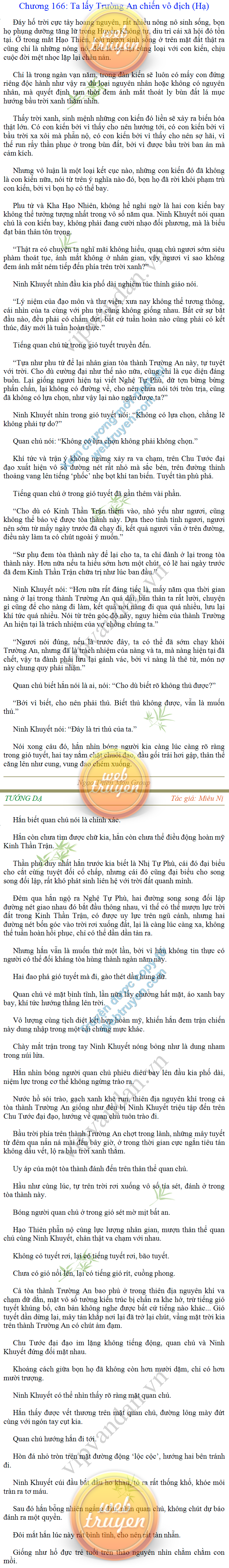 Tướng DạTruyện Converter, Truyện Huyền Huyễn, Truyện Kiếm Hiệp, Truyện Tiên HiệpTrên hoang nguyên trống trải bỗng xuất hiện ba người, cả ba đều không hẹn mà dừng chân dưới một thân cây còi cọc hiếm hoi, bọn họ không ai lên tiếng, chỉ im lặng cúi đầu nhìn xuống, tựa như dưới gốc cây có thứ gì đó rất thú vị, rất đáng để nghiên cứu và nghiền ngẫm. Hai đàn kiến vây kín quanh rễ cây màu nâu lộ ra trên mặt đất lạnh cóng tiến hành chiến tranh giành lãnh thổ, có lẽ vì trên mảnh hoang nguyên cằn cỗi vắng vẻ này chiếc rễ cây là một nơi trú ẩn tuyệt vời có một không hai nên trận chiến diễn ra hết sức khốc liệt, chỉ sau một lúc vài nghìn con kiến đã biến thành thi thể. Máu tanh là thế, nhưng thực tế trong mắt con người, vài nghìn xác kiến cũng chỉ là một mảng đen đen nhỏ xíu.Khí trời vẫn rất lạnh lẽo nhưng ba người đứng đó y phục lại khá mỏng manh, hình như họ không biết sợ lạnh là gì, cứ đứng bất động chăm chú quan sát. Không biết qua bao nhiêu lâu, bỗng một giọng khe khẽ cất lên:- Nước kiến nơi thế tục, đại đạo ra sao?Người vừa lên tiếng là một thiếu niên mặt mũi sáng sủa… *Chương này có nội dung ảnh, nếu bạn không thấy nội dung chương, vui lòng bật chế độ hiện hình ảnh của trình duyệt để đọc.