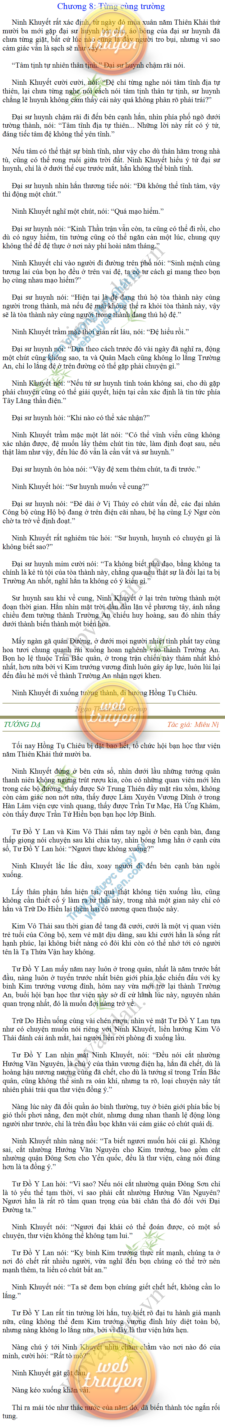 Tướng DạTruyện Converter, Truyện Huyền Huyễn, Truyện Kiếm Hiệp, Truyện Tiên HiệpTrên hoang nguyên trống trải bỗng xuất hiện ba người, cả ba đều không hẹn mà dừng chân dưới một thân cây còi cọc hiếm hoi, bọn họ không ai lên tiếng, chỉ im lặng cúi đầu nhìn xuống, tựa như dưới gốc cây có thứ gì đó rất thú vị, rất đáng để nghiên cứu và nghiền ngẫm. Hai đàn kiến vây kín quanh rễ cây màu nâu lộ ra trên mặt đất lạnh cóng tiến hành chiến tranh giành lãnh thổ, có lẽ vì trên mảnh hoang nguyên cằn cỗi vắng vẻ này chiếc rễ cây là một nơi trú ẩn tuyệt vời có một không hai nên trận chiến diễn ra hết sức khốc liệt, chỉ sau một lúc vài nghìn con kiến đã biến thành thi thể. Máu tanh là thế, nhưng thực tế trong mắt con người, vài nghìn xác kiến cũng chỉ là một mảng đen đen nhỏ xíu.Khí trời vẫn rất lạnh lẽo nhưng ba người đứng đó y phục lại khá mỏng manh, hình như họ không biết sợ lạnh là gì, cứ đứng bất động chăm chú quan sát. Không biết qua bao nhiêu lâu, bỗng một giọng khe khẽ cất lên:- Nước kiến nơi thế tục, đại đạo ra sao?Người vừa lên tiếng là một thiếu niên mặt mũi sáng sủa… *Chương này có nội dung ảnh, nếu bạn không thấy nội dung chương, vui lòng bật chế độ hiện hình ảnh của trình duyệt để đọc.