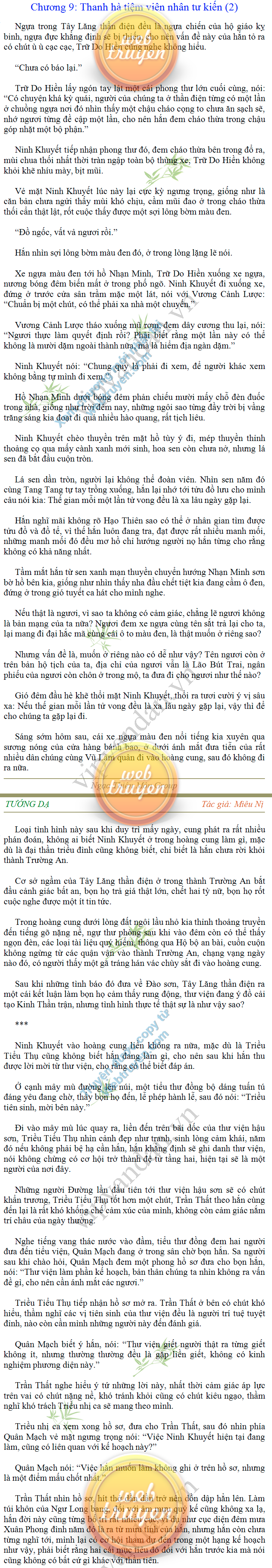 Tướng DạTruyện Converter, Truyện Huyền Huyễn, Truyện Kiếm Hiệp, Truyện Tiên HiệpTrên hoang nguyên trống trải bỗng xuất hiện ba người, cả ba đều không hẹn mà dừng chân dưới một thân cây còi cọc hiếm hoi, bọn họ không ai lên tiếng, chỉ im lặng cúi đầu nhìn xuống, tựa như dưới gốc cây có thứ gì đó rất thú vị, rất đáng để nghiên cứu và nghiền ngẫm. Hai đàn kiến vây kín quanh rễ cây màu nâu lộ ra trên mặt đất lạnh cóng tiến hành chiến tranh giành lãnh thổ, có lẽ vì trên mảnh hoang nguyên cằn cỗi vắng vẻ này chiếc rễ cây là một nơi trú ẩn tuyệt vời có một không hai nên trận chiến diễn ra hết sức khốc liệt, chỉ sau một lúc vài nghìn con kiến đã biến thành thi thể. Máu tanh là thế, nhưng thực tế trong mắt con người, vài nghìn xác kiến cũng chỉ là một mảng đen đen nhỏ xíu.Khí trời vẫn rất lạnh lẽo nhưng ba người đứng đó y phục lại khá mỏng manh, hình như họ không biết sợ lạnh là gì, cứ đứng bất động chăm chú quan sát. Không biết qua bao nhiêu lâu, bỗng một giọng khe khẽ cất lên:- Nước kiến nơi thế tục, đại đạo ra sao?Người vừa lên tiếng là một thiếu niên mặt mũi sáng sủa… *Chương này có nội dung ảnh, nếu bạn không thấy nội dung chương, vui lòng bật chế độ hiện hình ảnh của trình duyệt để đọc.