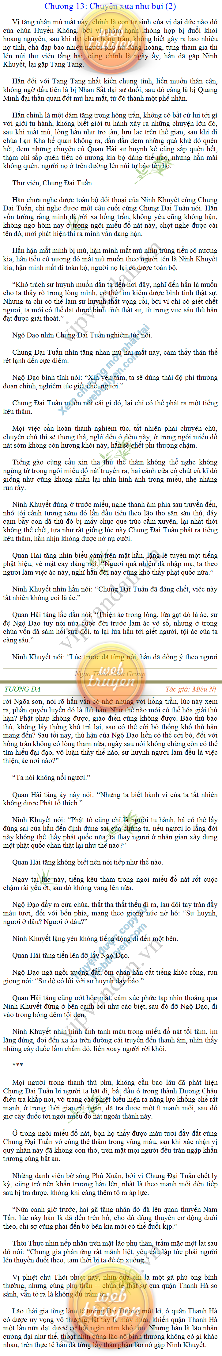 Tướng DạTruyện Converter, Truyện Huyền Huyễn, Truyện Kiếm Hiệp, Truyện Tiên HiệpTrên hoang nguyên trống trải bỗng xuất hiện ba người, cả ba đều không hẹn mà dừng chân dưới một thân cây còi cọc hiếm hoi, bọn họ không ai lên tiếng, chỉ im lặng cúi đầu nhìn xuống, tựa như dưới gốc cây có thứ gì đó rất thú vị, rất đáng để nghiên cứu và nghiền ngẫm. Hai đàn kiến vây kín quanh rễ cây màu nâu lộ ra trên mặt đất lạnh cóng tiến hành chiến tranh giành lãnh thổ, có lẽ vì trên mảnh hoang nguyên cằn cỗi vắng vẻ này chiếc rễ cây là một nơi trú ẩn tuyệt vời có một không hai nên trận chiến diễn ra hết sức khốc liệt, chỉ sau một lúc vài nghìn con kiến đã biến thành thi thể. Máu tanh là thế, nhưng thực tế trong mắt con người, vài nghìn xác kiến cũng chỉ là một mảng đen đen nhỏ xíu.Khí trời vẫn rất lạnh lẽo nhưng ba người đứng đó y phục lại khá mỏng manh, hình như họ không biết sợ lạnh là gì, cứ đứng bất động chăm chú quan sát. Không biết qua bao nhiêu lâu, bỗng một giọng khe khẽ cất lên:- Nước kiến nơi thế tục, đại đạo ra sao?Người vừa lên tiếng là một thiếu niên mặt mũi sáng sủa… *Chương này có nội dung ảnh, nếu bạn không thấy nội dung chương, vui lòng bật chế độ hiện hình ảnh của trình duyệt để đọc.