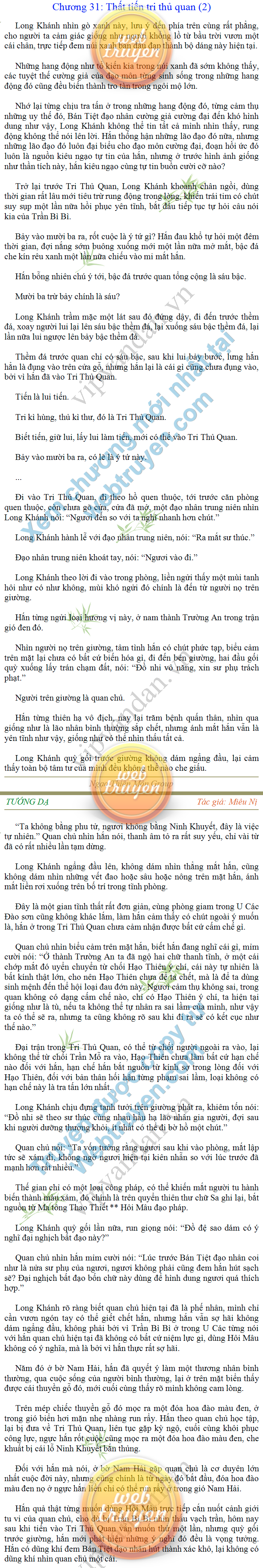 Tướng DạTruyện Converter, Truyện Huyền Huyễn, Truyện Kiếm Hiệp, Truyện Tiên HiệpTrên hoang nguyên trống trải bỗng xuất hiện ba người, cả ba đều không hẹn mà dừng chân dưới một thân cây còi cọc hiếm hoi, bọn họ không ai lên tiếng, chỉ im lặng cúi đầu nhìn xuống, tựa như dưới gốc cây có thứ gì đó rất thú vị, rất đáng để nghiên cứu và nghiền ngẫm. Hai đàn kiến vây kín quanh rễ cây màu nâu lộ ra trên mặt đất lạnh cóng tiến hành chiến tranh giành lãnh thổ, có lẽ vì trên mảnh hoang nguyên cằn cỗi vắng vẻ này chiếc rễ cây là một nơi trú ẩn tuyệt vời có một không hai nên trận chiến diễn ra hết sức khốc liệt, chỉ sau một lúc vài nghìn con kiến đã biến thành thi thể. Máu tanh là thế, nhưng thực tế trong mắt con người, vài nghìn xác kiến cũng chỉ là một mảng đen đen nhỏ xíu.Khí trời vẫn rất lạnh lẽo nhưng ba người đứng đó y phục lại khá mỏng manh, hình như họ không biết sợ lạnh là gì, cứ đứng bất động chăm chú quan sát. Không biết qua bao nhiêu lâu, bỗng một giọng khe khẽ cất lên:- Nước kiến nơi thế tục, đại đạo ra sao?Người vừa lên tiếng là một thiếu niên mặt mũi sáng sủa… *Chương này có nội dung ảnh, nếu bạn không thấy nội dung chương, vui lòng bật chế độ hiện hình ảnh của trình duyệt để đọc.