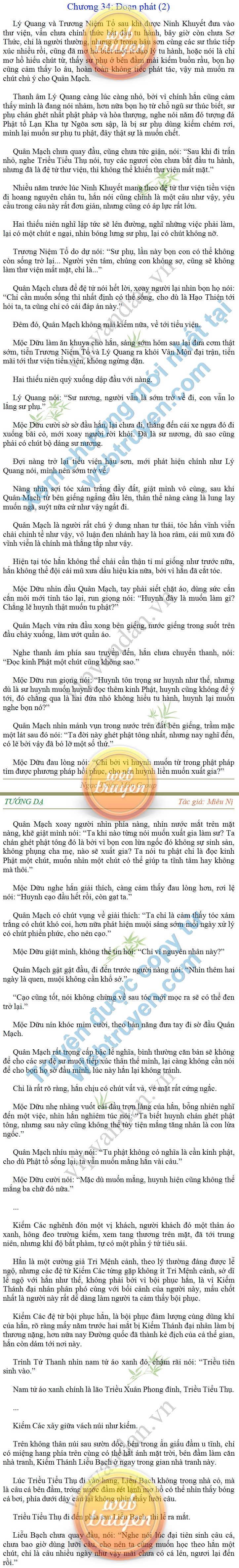 Tướng DạTruyện Converter, Truyện Huyền Huyễn, Truyện Kiếm Hiệp, Truyện Tiên HiệpTrên hoang nguyên trống trải bỗng xuất hiện ba người, cả ba đều không hẹn mà dừng chân dưới một thân cây còi cọc hiếm hoi, bọn họ không ai lên tiếng, chỉ im lặng cúi đầu nhìn xuống, tựa như dưới gốc cây có thứ gì đó rất thú vị, rất đáng để nghiên cứu và nghiền ngẫm. Hai đàn kiến vây kín quanh rễ cây màu nâu lộ ra trên mặt đất lạnh cóng tiến hành chiến tranh giành lãnh thổ, có lẽ vì trên mảnh hoang nguyên cằn cỗi vắng vẻ này chiếc rễ cây là một nơi trú ẩn tuyệt vời có một không hai nên trận chiến diễn ra hết sức khốc liệt, chỉ sau một lúc vài nghìn con kiến đã biến thành thi thể. Máu tanh là thế, nhưng thực tế trong mắt con người, vài nghìn xác kiến cũng chỉ là một mảng đen đen nhỏ xíu.Khí trời vẫn rất lạnh lẽo nhưng ba người đứng đó y phục lại khá mỏng manh, hình như họ không biết sợ lạnh là gì, cứ đứng bất động chăm chú quan sát. Không biết qua bao nhiêu lâu, bỗng một giọng khe khẽ cất lên:- Nước kiến nơi thế tục, đại đạo ra sao?Người vừa lên tiếng là một thiếu niên mặt mũi sáng sủa… *Chương này có nội dung ảnh, nếu bạn không thấy nội dung chương, vui lòng bật chế độ hiện hình ảnh của trình duyệt để đọc.