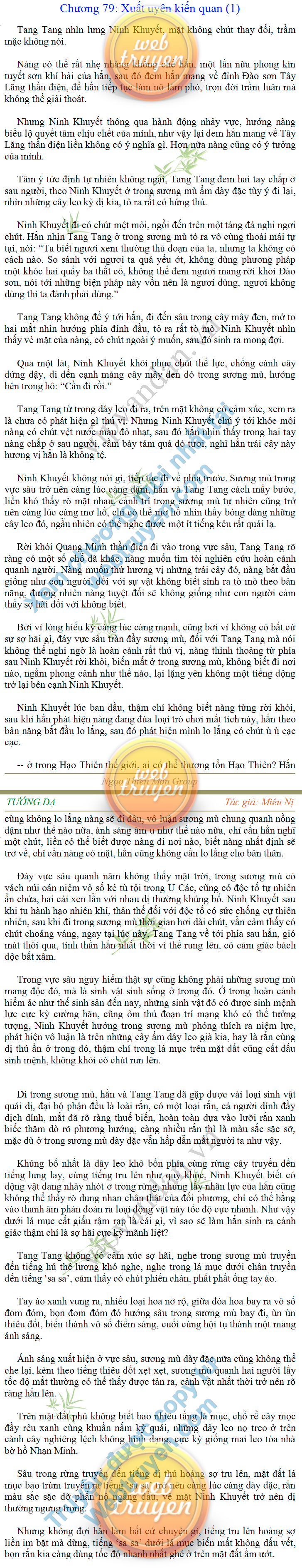 Tướng DạTruyện Converter, Truyện Huyền Huyễn, Truyện Kiếm Hiệp, Truyện Tiên HiệpTrên hoang nguyên trống trải bỗng xuất hiện ba người, cả ba đều không hẹn mà dừng chân dưới một thân cây còi cọc hiếm hoi, bọn họ không ai lên tiếng, chỉ im lặng cúi đầu nhìn xuống, tựa như dưới gốc cây có thứ gì đó rất thú vị, rất đáng để nghiên cứu và nghiền ngẫm. Hai đàn kiến vây kín quanh rễ cây màu nâu lộ ra trên mặt đất lạnh cóng tiến hành chiến tranh giành lãnh thổ, có lẽ vì trên mảnh hoang nguyên cằn cỗi vắng vẻ này chiếc rễ cây là một nơi trú ẩn tuyệt vời có một không hai nên trận chiến diễn ra hết sức khốc liệt, chỉ sau một lúc vài nghìn con kiến đã biến thành thi thể. Máu tanh là thế, nhưng thực tế trong mắt con người, vài nghìn xác kiến cũng chỉ là một mảng đen đen nhỏ xíu.Khí trời vẫn rất lạnh lẽo nhưng ba người đứng đó y phục lại khá mỏng manh, hình như họ không biết sợ lạnh là gì, cứ đứng bất động chăm chú quan sát. Không biết qua bao nhiêu lâu, bỗng một giọng khe khẽ cất lên:- Nước kiến nơi thế tục, đại đạo ra sao?Người vừa lên tiếng là một thiếu niên mặt mũi sáng sủa… *Chương này có nội dung ảnh, nếu bạn không thấy nội dung chương, vui lòng bật chế độ hiện hình ảnh của trình duyệt để đọc.