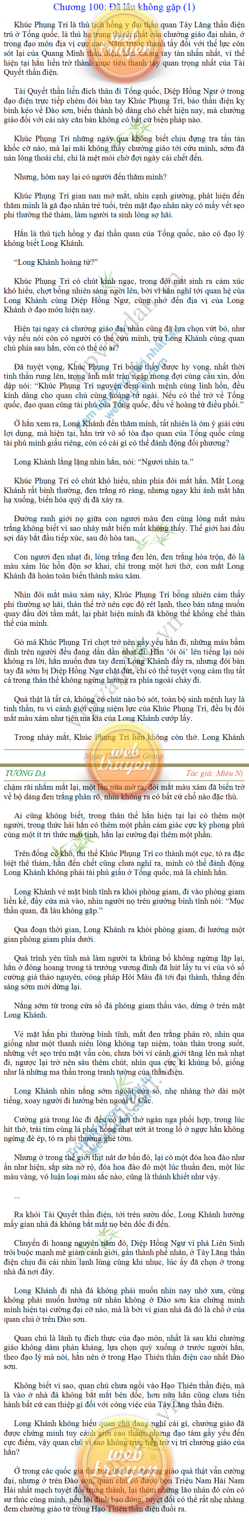 Tướng DạTruyện Converter, Truyện Huyền Huyễn, Truyện Kiếm Hiệp, Truyện Tiên HiệpTrên hoang nguyên trống trải bỗng xuất hiện ba người, cả ba đều không hẹn mà dừng chân dưới một thân cây còi cọc hiếm hoi, bọn họ không ai lên tiếng, chỉ im lặng cúi đầu nhìn xuống, tựa như dưới gốc cây có thứ gì đó rất thú vị, rất đáng để nghiên cứu và nghiền ngẫm. Hai đàn kiến vây kín quanh rễ cây màu nâu lộ ra trên mặt đất lạnh cóng tiến hành chiến tranh giành lãnh thổ, có lẽ vì trên mảnh hoang nguyên cằn cỗi vắng vẻ này chiếc rễ cây là một nơi trú ẩn tuyệt vời có một không hai nên trận chiến diễn ra hết sức khốc liệt, chỉ sau một lúc vài nghìn con kiến đã biến thành thi thể. Máu tanh là thế, nhưng thực tế trong mắt con người, vài nghìn xác kiến cũng chỉ là một mảng đen đen nhỏ xíu.Khí trời vẫn rất lạnh lẽo nhưng ba người đứng đó y phục lại khá mỏng manh, hình như họ không biết sợ lạnh là gì, cứ đứng bất động chăm chú quan sát. Không biết qua bao nhiêu lâu, bỗng một giọng khe khẽ cất lên:- Nước kiến nơi thế tục, đại đạo ra sao?Người vừa lên tiếng là một thiếu niên mặt mũi sáng sủa… *Chương này có nội dung ảnh, nếu bạn không thấy nội dung chương, vui lòng bật chế độ hiện hình ảnh của trình duyệt để đọc.