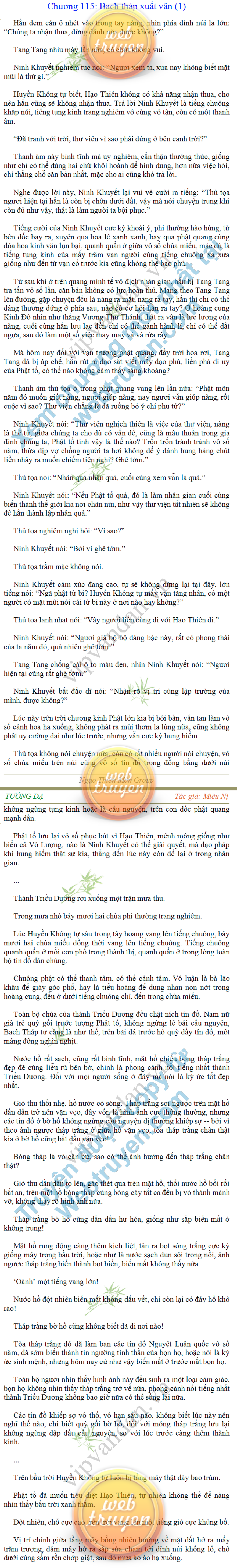 Tướng DạTruyện Converter, Truyện Huyền Huyễn, Truyện Kiếm Hiệp, Truyện Tiên HiệpTrên hoang nguyên trống trải bỗng xuất hiện ba người, cả ba đều không hẹn mà dừng chân dưới một thân cây còi cọc hiếm hoi, bọn họ không ai lên tiếng, chỉ im lặng cúi đầu nhìn xuống, tựa như dưới gốc cây có thứ gì đó rất thú vị, rất đáng để nghiên cứu và nghiền ngẫm. Hai đàn kiến vây kín quanh rễ cây màu nâu lộ ra trên mặt đất lạnh cóng tiến hành chiến tranh giành lãnh thổ, có lẽ vì trên mảnh hoang nguyên cằn cỗi vắng vẻ này chiếc rễ cây là một nơi trú ẩn tuyệt vời có một không hai nên trận chiến diễn ra hết sức khốc liệt, chỉ sau một lúc vài nghìn con kiến đã biến thành thi thể. Máu tanh là thế, nhưng thực tế trong mắt con người, vài nghìn xác kiến cũng chỉ là một mảng đen đen nhỏ xíu.Khí trời vẫn rất lạnh lẽo nhưng ba người đứng đó y phục lại khá mỏng manh, hình như họ không biết sợ lạnh là gì, cứ đứng bất động chăm chú quan sát. Không biết qua bao nhiêu lâu, bỗng một giọng khe khẽ cất lên:- Nước kiến nơi thế tục, đại đạo ra sao?Người vừa lên tiếng là một thiếu niên mặt mũi sáng sủa… *Chương này có nội dung ảnh, nếu bạn không thấy nội dung chương, vui lòng bật chế độ hiện hình ảnh của trình duyệt để đọc.