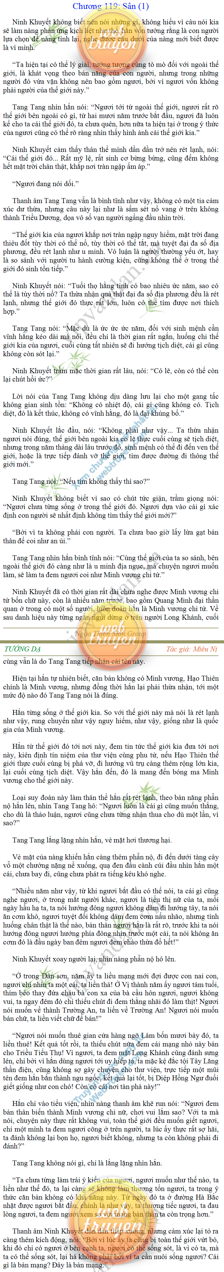 Tướng DạTruyện Converter, Truyện Huyền Huyễn, Truyện Kiếm Hiệp, Truyện Tiên HiệpTrên hoang nguyên trống trải bỗng xuất hiện ba người, cả ba đều không hẹn mà dừng chân dưới một thân cây còi cọc hiếm hoi, bọn họ không ai lên tiếng, chỉ im lặng cúi đầu nhìn xuống, tựa như dưới gốc cây có thứ gì đó rất thú vị, rất đáng để nghiên cứu và nghiền ngẫm. Hai đàn kiến vây kín quanh rễ cây màu nâu lộ ra trên mặt đất lạnh cóng tiến hành chiến tranh giành lãnh thổ, có lẽ vì trên mảnh hoang nguyên cằn cỗi vắng vẻ này chiếc rễ cây là một nơi trú ẩn tuyệt vời có một không hai nên trận chiến diễn ra hết sức khốc liệt, chỉ sau một lúc vài nghìn con kiến đã biến thành thi thể. Máu tanh là thế, nhưng thực tế trong mắt con người, vài nghìn xác kiến cũng chỉ là một mảng đen đen nhỏ xíu.Khí trời vẫn rất lạnh lẽo nhưng ba người đứng đó y phục lại khá mỏng manh, hình như họ không biết sợ lạnh là gì, cứ đứng bất động chăm chú quan sát. Không biết qua bao nhiêu lâu, bỗng một giọng khe khẽ cất lên:- Nước kiến nơi thế tục, đại đạo ra sao?Người vừa lên tiếng là một thiếu niên mặt mũi sáng sủa… *Chương này có nội dung ảnh, nếu bạn không thấy nội dung chương, vui lòng bật chế độ hiện hình ảnh của trình duyệt để đọc.
