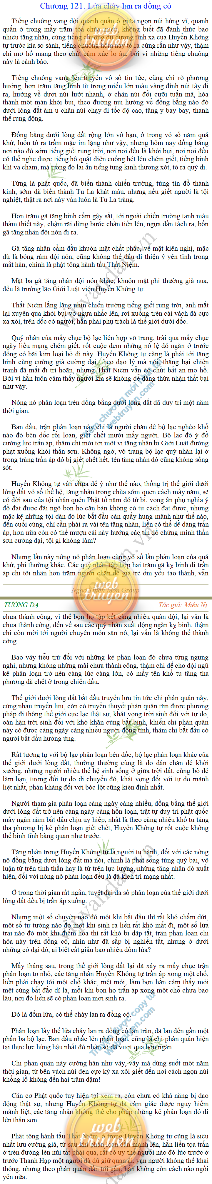 Tướng DạTruyện Converter, Truyện Huyền Huyễn, Truyện Kiếm Hiệp, Truyện Tiên HiệpTrên hoang nguyên trống trải bỗng xuất hiện ba người, cả ba đều không hẹn mà dừng chân dưới một thân cây còi cọc hiếm hoi, bọn họ không ai lên tiếng, chỉ im lặng cúi đầu nhìn xuống, tựa như dưới gốc cây có thứ gì đó rất thú vị, rất đáng để nghiên cứu và nghiền ngẫm. Hai đàn kiến vây kín quanh rễ cây màu nâu lộ ra trên mặt đất lạnh cóng tiến hành chiến tranh giành lãnh thổ, có lẽ vì trên mảnh hoang nguyên cằn cỗi vắng vẻ này chiếc rễ cây là một nơi trú ẩn tuyệt vời có một không hai nên trận chiến diễn ra hết sức khốc liệt, chỉ sau một lúc vài nghìn con kiến đã biến thành thi thể. Máu tanh là thế, nhưng thực tế trong mắt con người, vài nghìn xác kiến cũng chỉ là một mảng đen đen nhỏ xíu.Khí trời vẫn rất lạnh lẽo nhưng ba người đứng đó y phục lại khá mỏng manh, hình như họ không biết sợ lạnh là gì, cứ đứng bất động chăm chú quan sát. Không biết qua bao nhiêu lâu, bỗng một giọng khe khẽ cất lên:- Nước kiến nơi thế tục, đại đạo ra sao?Người vừa lên tiếng là một thiếu niên mặt mũi sáng sủa… *Chương này có nội dung ảnh, nếu bạn không thấy nội dung chương, vui lòng bật chế độ hiện hình ảnh của trình duyệt để đọc.