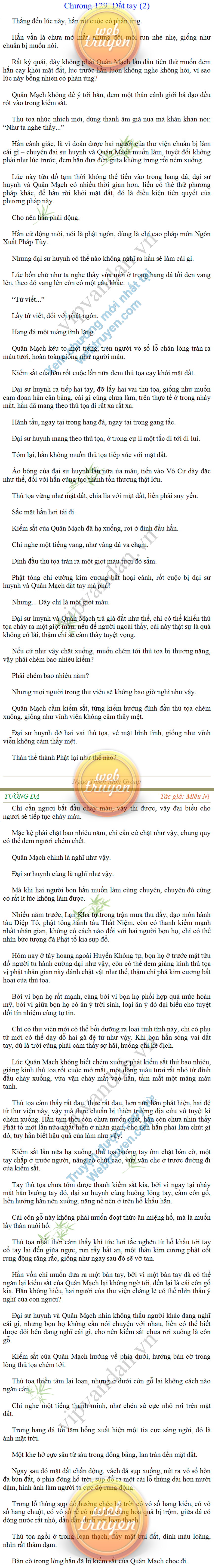 Tướng DạTruyện Converter, Truyện Huyền Huyễn, Truyện Kiếm Hiệp, Truyện Tiên HiệpTrên hoang nguyên trống trải bỗng xuất hiện ba người, cả ba đều không hẹn mà dừng chân dưới một thân cây còi cọc hiếm hoi, bọn họ không ai lên tiếng, chỉ im lặng cúi đầu nhìn xuống, tựa như dưới gốc cây có thứ gì đó rất thú vị, rất đáng để nghiên cứu và nghiền ngẫm. Hai đàn kiến vây kín quanh rễ cây màu nâu lộ ra trên mặt đất lạnh cóng tiến hành chiến tranh giành lãnh thổ, có lẽ vì trên mảnh hoang nguyên cằn cỗi vắng vẻ này chiếc rễ cây là một nơi trú ẩn tuyệt vời có một không hai nên trận chiến diễn ra hết sức khốc liệt, chỉ sau một lúc vài nghìn con kiến đã biến thành thi thể. Máu tanh là thế, nhưng thực tế trong mắt con người, vài nghìn xác kiến cũng chỉ là một mảng đen đen nhỏ xíu.Khí trời vẫn rất lạnh lẽo nhưng ba người đứng đó y phục lại khá mỏng manh, hình như họ không biết sợ lạnh là gì, cứ đứng bất động chăm chú quan sát. Không biết qua bao nhiêu lâu, bỗng một giọng khe khẽ cất lên:- Nước kiến nơi thế tục, đại đạo ra sao?Người vừa lên tiếng là một thiếu niên mặt mũi sáng sủa… *Chương này có nội dung ảnh, nếu bạn không thấy nội dung chương, vui lòng bật chế độ hiện hình ảnh của trình duyệt để đọc.