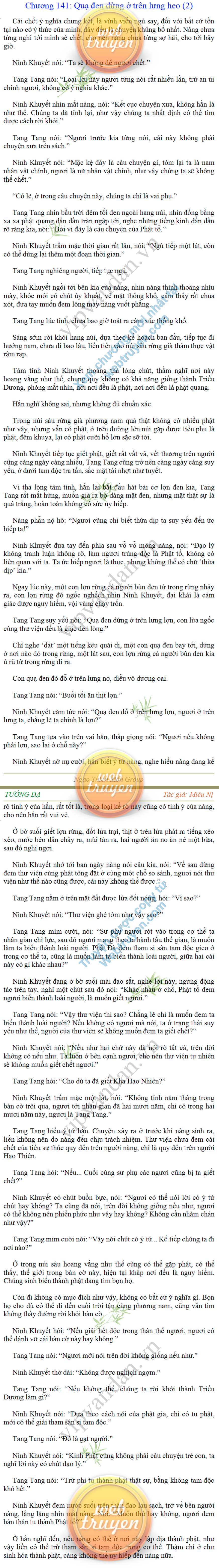 Tướng DạTruyện Converter, Truyện Huyền Huyễn, Truyện Kiếm Hiệp, Truyện Tiên HiệpTrên hoang nguyên trống trải bỗng xuất hiện ba người, cả ba đều không hẹn mà dừng chân dưới một thân cây còi cọc hiếm hoi, bọn họ không ai lên tiếng, chỉ im lặng cúi đầu nhìn xuống, tựa như dưới gốc cây có thứ gì đó rất thú vị, rất đáng để nghiên cứu và nghiền ngẫm. Hai đàn kiến vây kín quanh rễ cây màu nâu lộ ra trên mặt đất lạnh cóng tiến hành chiến tranh giành lãnh thổ, có lẽ vì trên mảnh hoang nguyên cằn cỗi vắng vẻ này chiếc rễ cây là một nơi trú ẩn tuyệt vời có một không hai nên trận chiến diễn ra hết sức khốc liệt, chỉ sau một lúc vài nghìn con kiến đã biến thành thi thể. Máu tanh là thế, nhưng thực tế trong mắt con người, vài nghìn xác kiến cũng chỉ là một mảng đen đen nhỏ xíu.Khí trời vẫn rất lạnh lẽo nhưng ba người đứng đó y phục lại khá mỏng manh, hình như họ không biết sợ lạnh là gì, cứ đứng bất động chăm chú quan sát. Không biết qua bao nhiêu lâu, bỗng một giọng khe khẽ cất lên:- Nước kiến nơi thế tục, đại đạo ra sao?Người vừa lên tiếng là một thiếu niên mặt mũi sáng sủa… *Chương này có nội dung ảnh, nếu bạn không thấy nội dung chương, vui lòng bật chế độ hiện hình ảnh của trình duyệt để đọc.