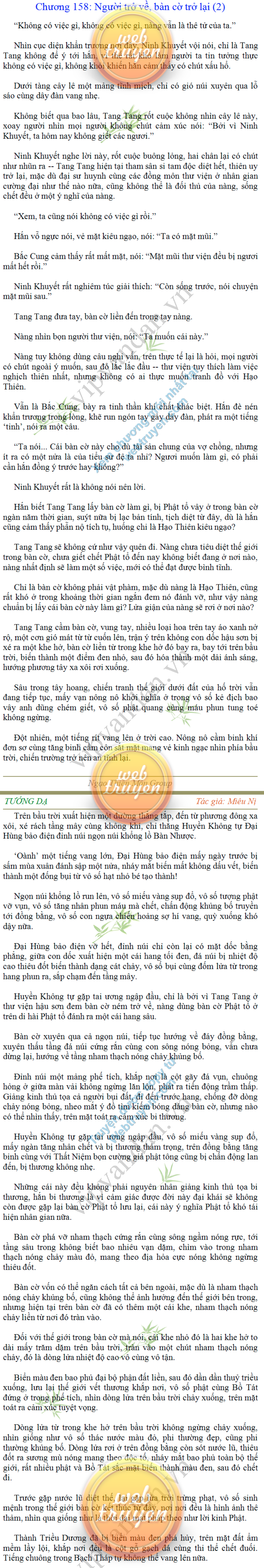 Tướng DạTruyện Converter, Truyện Huyền Huyễn, Truyện Kiếm Hiệp, Truyện Tiên HiệpTrên hoang nguyên trống trải bỗng xuất hiện ba người, cả ba đều không hẹn mà dừng chân dưới một thân cây còi cọc hiếm hoi, bọn họ không ai lên tiếng, chỉ im lặng cúi đầu nhìn xuống, tựa như dưới gốc cây có thứ gì đó rất thú vị, rất đáng để nghiên cứu và nghiền ngẫm. Hai đàn kiến vây kín quanh rễ cây màu nâu lộ ra trên mặt đất lạnh cóng tiến hành chiến tranh giành lãnh thổ, có lẽ vì trên mảnh hoang nguyên cằn cỗi vắng vẻ này chiếc rễ cây là một nơi trú ẩn tuyệt vời có một không hai nên trận chiến diễn ra hết sức khốc liệt, chỉ sau một lúc vài nghìn con kiến đã biến thành thi thể. Máu tanh là thế, nhưng thực tế trong mắt con người, vài nghìn xác kiến cũng chỉ là một mảng đen đen nhỏ xíu.Khí trời vẫn rất lạnh lẽo nhưng ba người đứng đó y phục lại khá mỏng manh, hình như họ không biết sợ lạnh là gì, cứ đứng bất động chăm chú quan sát. Không biết qua bao nhiêu lâu, bỗng một giọng khe khẽ cất lên:- Nước kiến nơi thế tục, đại đạo ra sao?Người vừa lên tiếng là một thiếu niên mặt mũi sáng sủa… *Chương này có nội dung ảnh, nếu bạn không thấy nội dung chương, vui lòng bật chế độ hiện hình ảnh của trình duyệt để đọc.