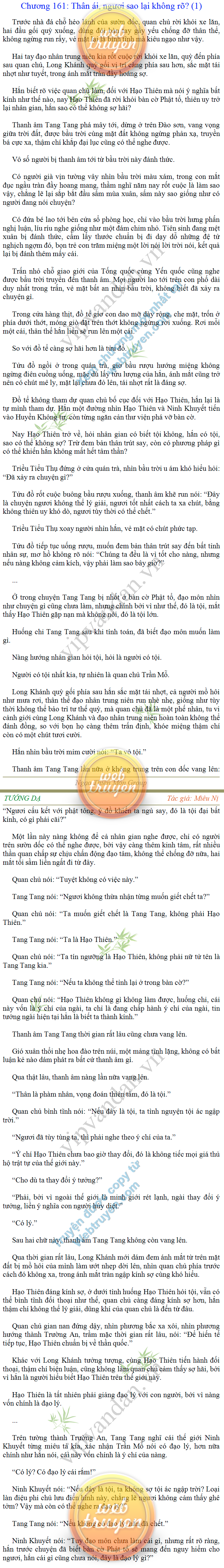 Tướng DạTruyện Converter, Truyện Huyền Huyễn, Truyện Kiếm Hiệp, Truyện Tiên HiệpTrên hoang nguyên trống trải bỗng xuất hiện ba người, cả ba đều không hẹn mà dừng chân dưới một thân cây còi cọc hiếm hoi, bọn họ không ai lên tiếng, chỉ im lặng cúi đầu nhìn xuống, tựa như dưới gốc cây có thứ gì đó rất thú vị, rất đáng để nghiên cứu và nghiền ngẫm. Hai đàn kiến vây kín quanh rễ cây màu nâu lộ ra trên mặt đất lạnh cóng tiến hành chiến tranh giành lãnh thổ, có lẽ vì trên mảnh hoang nguyên cằn cỗi vắng vẻ này chiếc rễ cây là một nơi trú ẩn tuyệt vời có một không hai nên trận chiến diễn ra hết sức khốc liệt, chỉ sau một lúc vài nghìn con kiến đã biến thành thi thể. Máu tanh là thế, nhưng thực tế trong mắt con người, vài nghìn xác kiến cũng chỉ là một mảng đen đen nhỏ xíu.Khí trời vẫn rất lạnh lẽo nhưng ba người đứng đó y phục lại khá mỏng manh, hình như họ không biết sợ lạnh là gì, cứ đứng bất động chăm chú quan sát. Không biết qua bao nhiêu lâu, bỗng một giọng khe khẽ cất lên:- Nước kiến nơi thế tục, đại đạo ra sao?Người vừa lên tiếng là một thiếu niên mặt mũi sáng sủa… *Chương này có nội dung ảnh, nếu bạn không thấy nội dung chương, vui lòng bật chế độ hiện hình ảnh của trình duyệt để đọc.