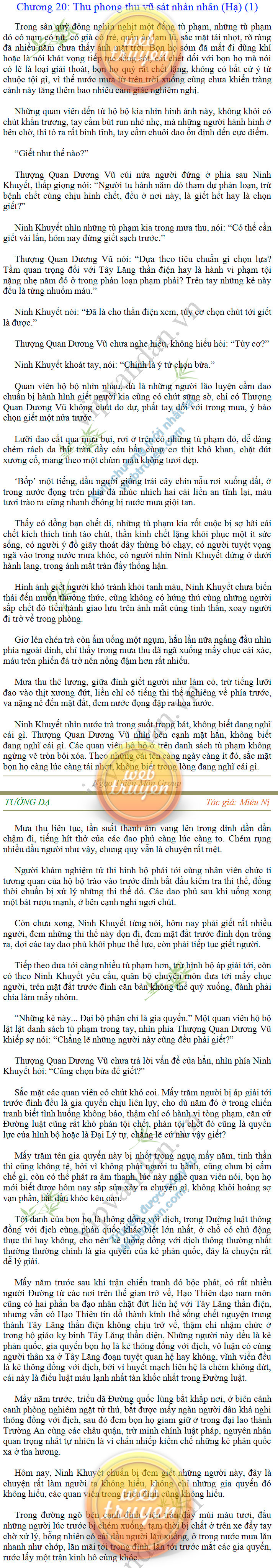 Tướng DạTruyện Converter, Truyện Huyền Huyễn, Truyện Kiếm Hiệp, Truyện Tiên HiệpTrên hoang nguyên trống trải bỗng xuất hiện ba người, cả ba đều không hẹn mà dừng chân dưới một thân cây còi cọc hiếm hoi, bọn họ không ai lên tiếng, chỉ im lặng cúi đầu nhìn xuống, tựa như dưới gốc cây có thứ gì đó rất thú vị, rất đáng để nghiên cứu và nghiền ngẫm. Hai đàn kiến vây kín quanh rễ cây màu nâu lộ ra trên mặt đất lạnh cóng tiến hành chiến tranh giành lãnh thổ, có lẽ vì trên mảnh hoang nguyên cằn cỗi vắng vẻ này chiếc rễ cây là một nơi trú ẩn tuyệt vời có một không hai nên trận chiến diễn ra hết sức khốc liệt, chỉ sau một lúc vài nghìn con kiến đã biến thành thi thể. Máu tanh là thế, nhưng thực tế trong mắt con người, vài nghìn xác kiến cũng chỉ là một mảng đen đen nhỏ xíu.Khí trời vẫn rất lạnh lẽo nhưng ba người đứng đó y phục lại khá mỏng manh, hình như họ không biết sợ lạnh là gì, cứ đứng bất động chăm chú quan sát. Không biết qua bao nhiêu lâu, bỗng một giọng khe khẽ cất lên:- Nước kiến nơi thế tục, đại đạo ra sao?Người vừa lên tiếng là một thiếu niên mặt mũi sáng sủa… *Chương này có nội dung ảnh, nếu bạn không thấy nội dung chương, vui lòng bật chế độ hiện hình ảnh của trình duyệt để đọc.