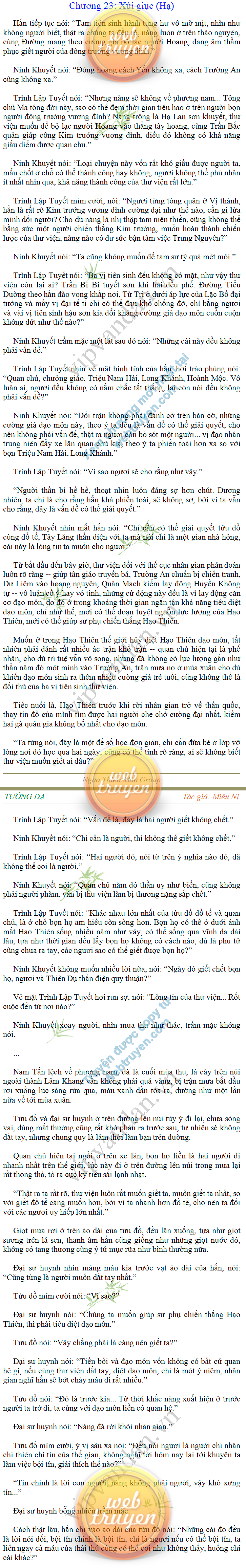 Tướng DạTruyện Converter, Truyện Huyền Huyễn, Truyện Kiếm Hiệp, Truyện Tiên HiệpTrên hoang nguyên trống trải bỗng xuất hiện ba người, cả ba đều không hẹn mà dừng chân dưới một thân cây còi cọc hiếm hoi, bọn họ không ai lên tiếng, chỉ im lặng cúi đầu nhìn xuống, tựa như dưới gốc cây có thứ gì đó rất thú vị, rất đáng để nghiên cứu và nghiền ngẫm. Hai đàn kiến vây kín quanh rễ cây màu nâu lộ ra trên mặt đất lạnh cóng tiến hành chiến tranh giành lãnh thổ, có lẽ vì trên mảnh hoang nguyên cằn cỗi vắng vẻ này chiếc rễ cây là một nơi trú ẩn tuyệt vời có một không hai nên trận chiến diễn ra hết sức khốc liệt, chỉ sau một lúc vài nghìn con kiến đã biến thành thi thể. Máu tanh là thế, nhưng thực tế trong mắt con người, vài nghìn xác kiến cũng chỉ là một mảng đen đen nhỏ xíu.Khí trời vẫn rất lạnh lẽo nhưng ba người đứng đó y phục lại khá mỏng manh, hình như họ không biết sợ lạnh là gì, cứ đứng bất động chăm chú quan sát. Không biết qua bao nhiêu lâu, bỗng một giọng khe khẽ cất lên:- Nước kiến nơi thế tục, đại đạo ra sao?Người vừa lên tiếng là một thiếu niên mặt mũi sáng sủa… *Chương này có nội dung ảnh, nếu bạn không thấy nội dung chương, vui lòng bật chế độ hiện hình ảnh của trình duyệt để đọc.