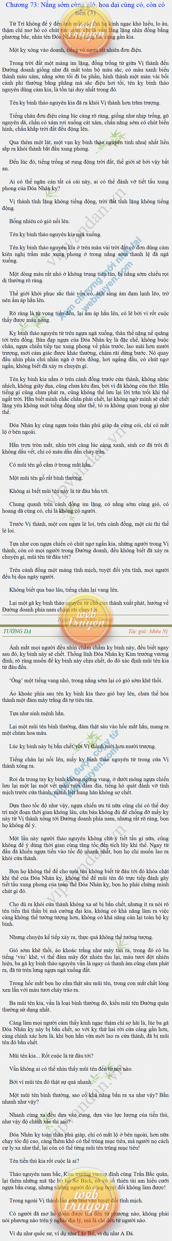 Tướng DạTruyện Converter, Truyện Huyền Huyễn, Truyện Kiếm Hiệp, Truyện Tiên HiệpTrên hoang nguyên trống trải bỗng xuất hiện ba người, cả ba đều không hẹn mà dừng chân dưới một thân cây còi cọc hiếm hoi, bọn họ không ai lên tiếng, chỉ im lặng cúi đầu nhìn xuống, tựa như dưới gốc cây có thứ gì đó rất thú vị, rất đáng để nghiên cứu và nghiền ngẫm. Hai đàn kiến vây kín quanh rễ cây màu nâu lộ ra trên mặt đất lạnh cóng tiến hành chiến tranh giành lãnh thổ, có lẽ vì trên mảnh hoang nguyên cằn cỗi vắng vẻ này chiếc rễ cây là một nơi trú ẩn tuyệt vời có một không hai nên trận chiến diễn ra hết sức khốc liệt, chỉ sau một lúc vài nghìn con kiến đã biến thành thi thể. Máu tanh là thế, nhưng thực tế trong mắt con người, vài nghìn xác kiến cũng chỉ là một mảng đen đen nhỏ xíu.Khí trời vẫn rất lạnh lẽo nhưng ba người đứng đó y phục lại khá mỏng manh, hình như họ không biết sợ lạnh là gì, cứ đứng bất động chăm chú quan sát. Không biết qua bao nhiêu lâu, bỗng một giọng khe khẽ cất lên:- Nước kiến nơi thế tục, đại đạo ra sao?Người vừa lên tiếng là một thiếu niên mặt mũi sáng sủa… *Chương này có nội dung ảnh, nếu bạn không thấy nội dung chương, vui lòng bật chế độ hiện hình ảnh của trình duyệt để đọc.